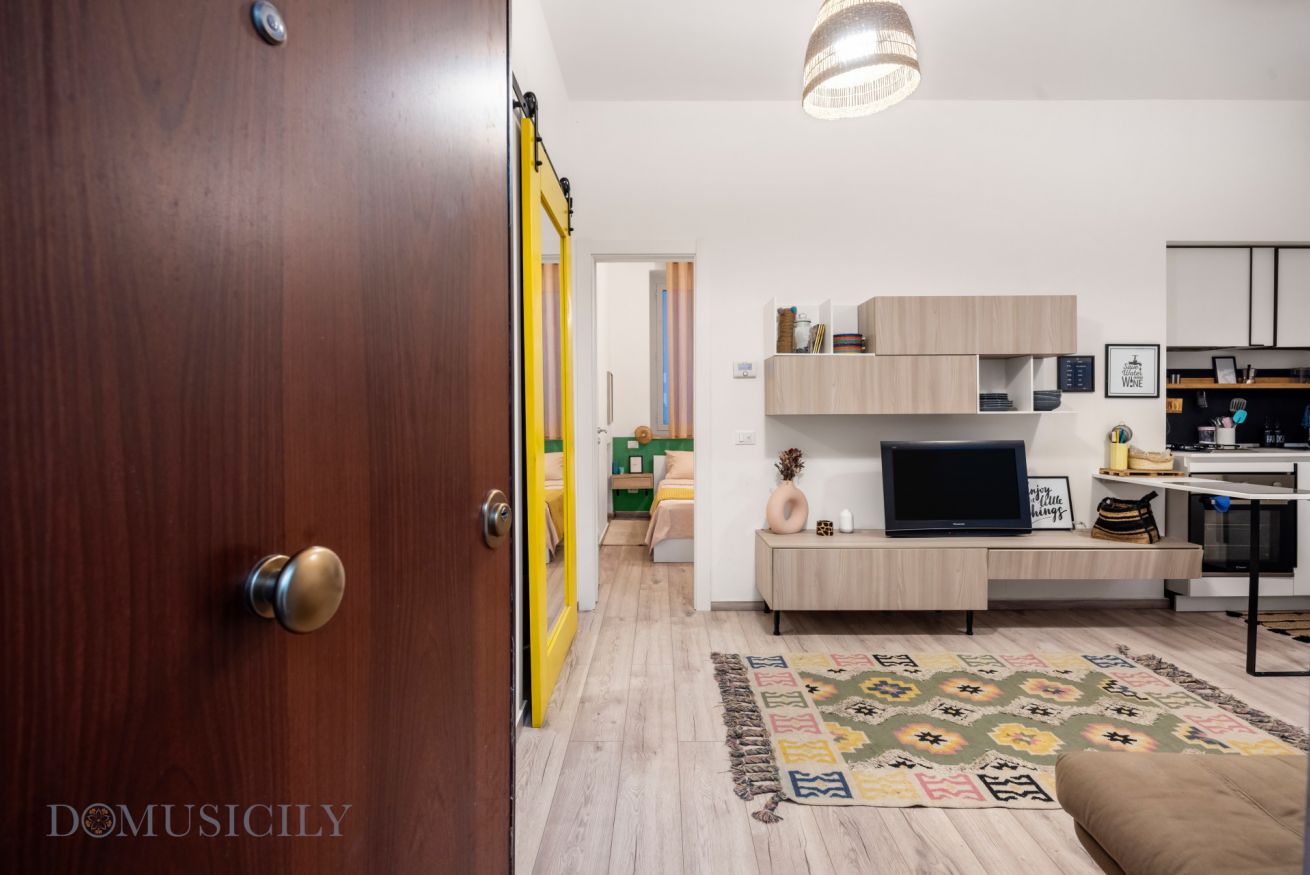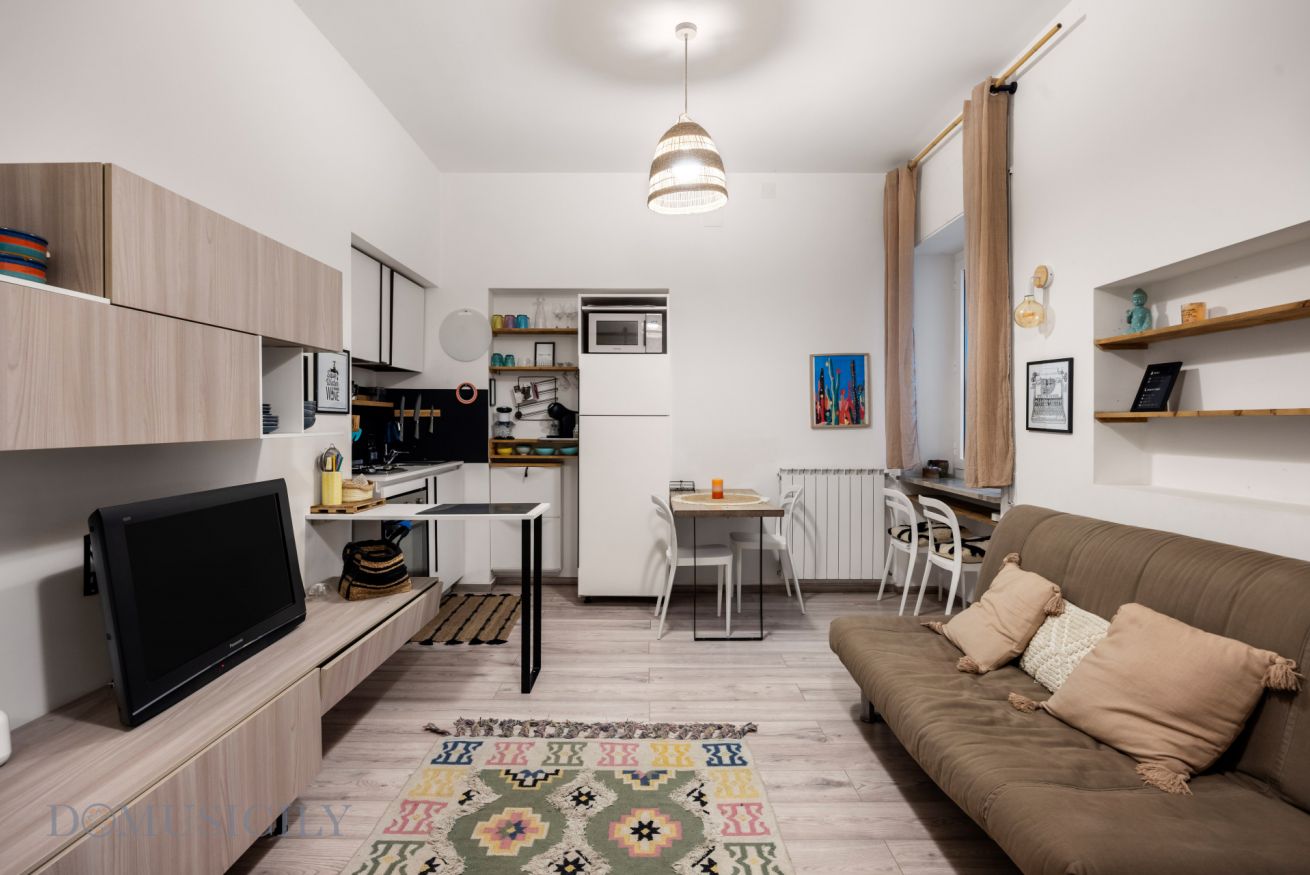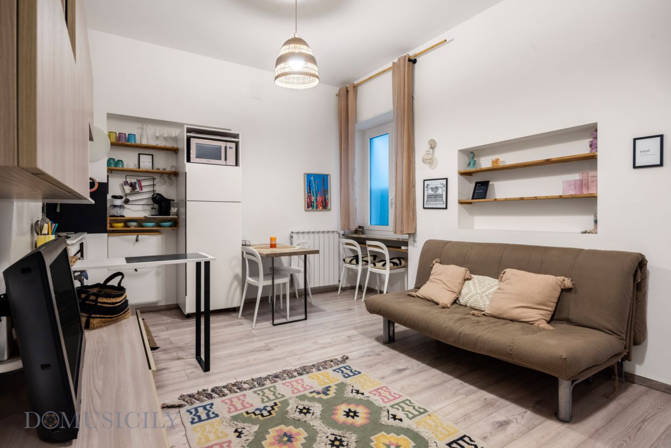 L’immobile è composto da una luminosa zona living con cucina a vista, una confortevole camera matrimoniale e un bagno moderno. Gli ambienti sono arredati con gusto contemporaneo, combinando tonalità calde, materiali naturali e soluzioni funzionali che creano un’atmosfera accogliente e rilassante.