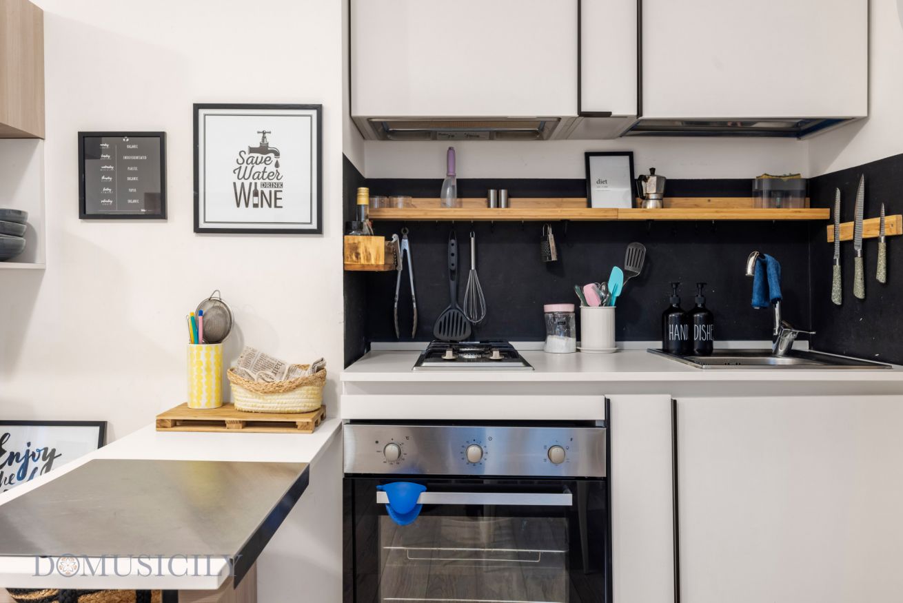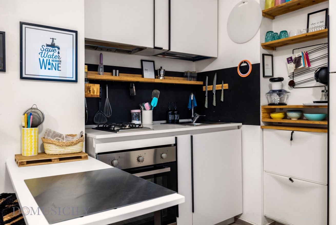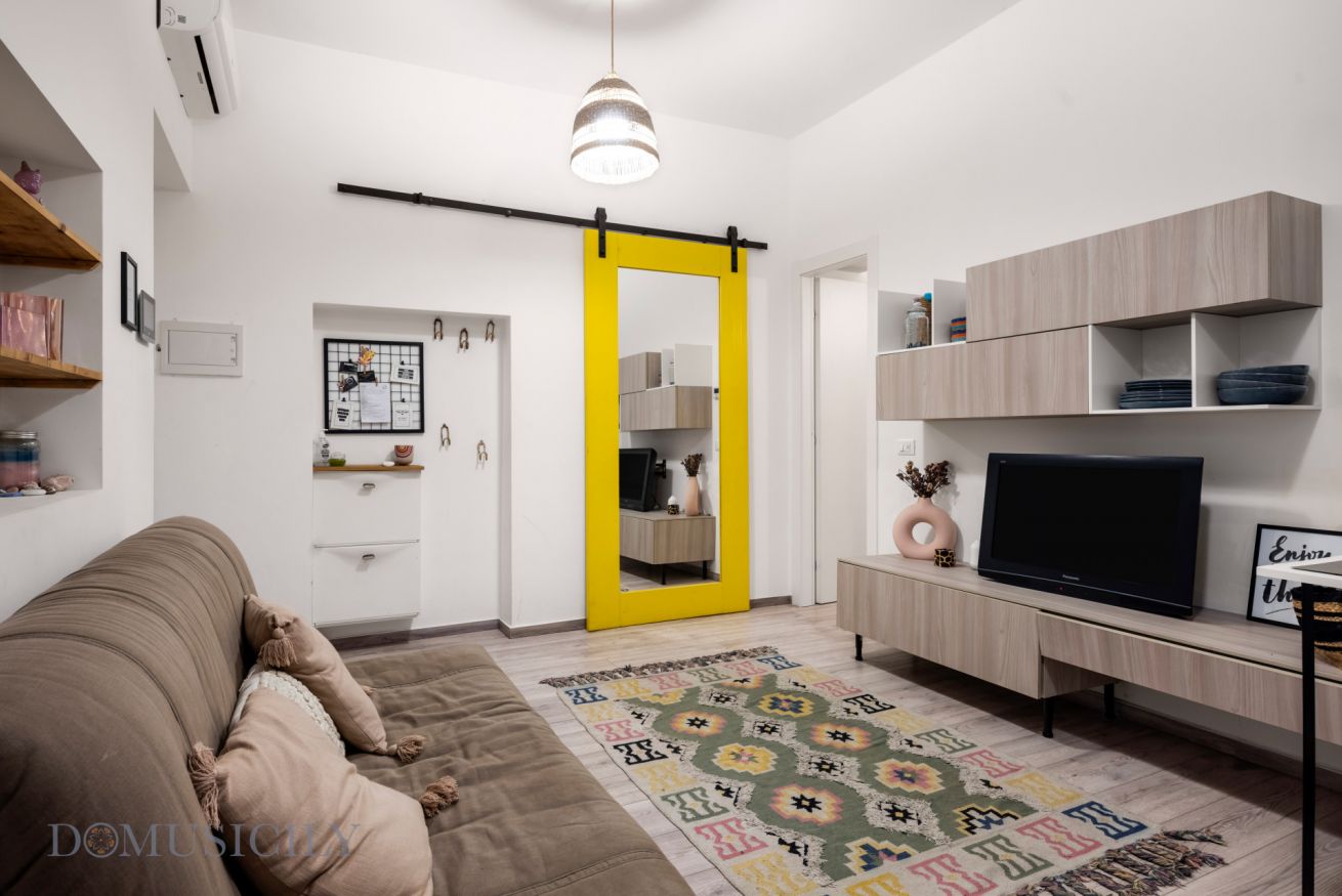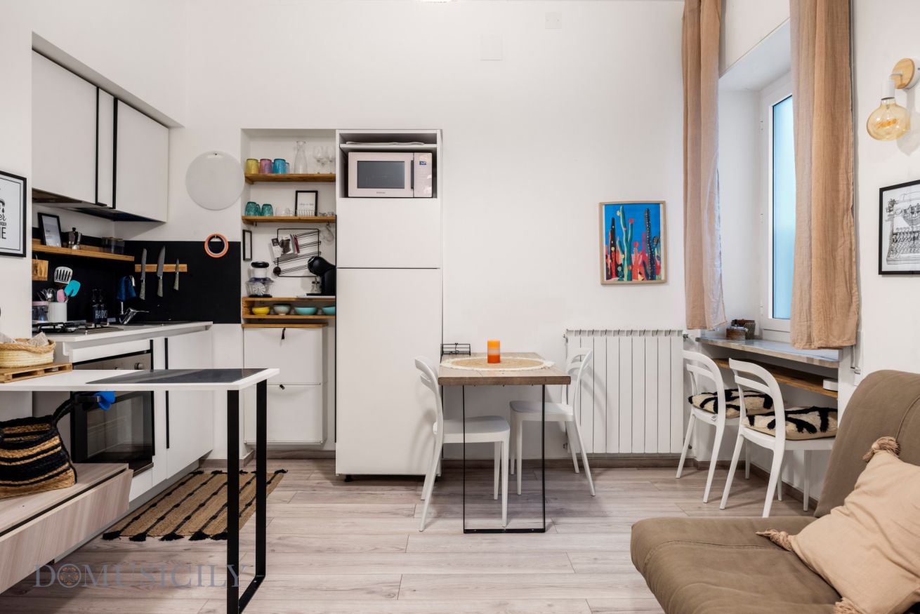 L’immobile è composto da una luminosa zona living con cucina a vista, una confortevole camera matrimoniale e un bagno moderno. Gli ambienti sono arredati con gusto contemporaneo, combinando tonalità calde, materiali naturali e soluzioni funzionali che creano un’atmosfera accogliente e rilassante.