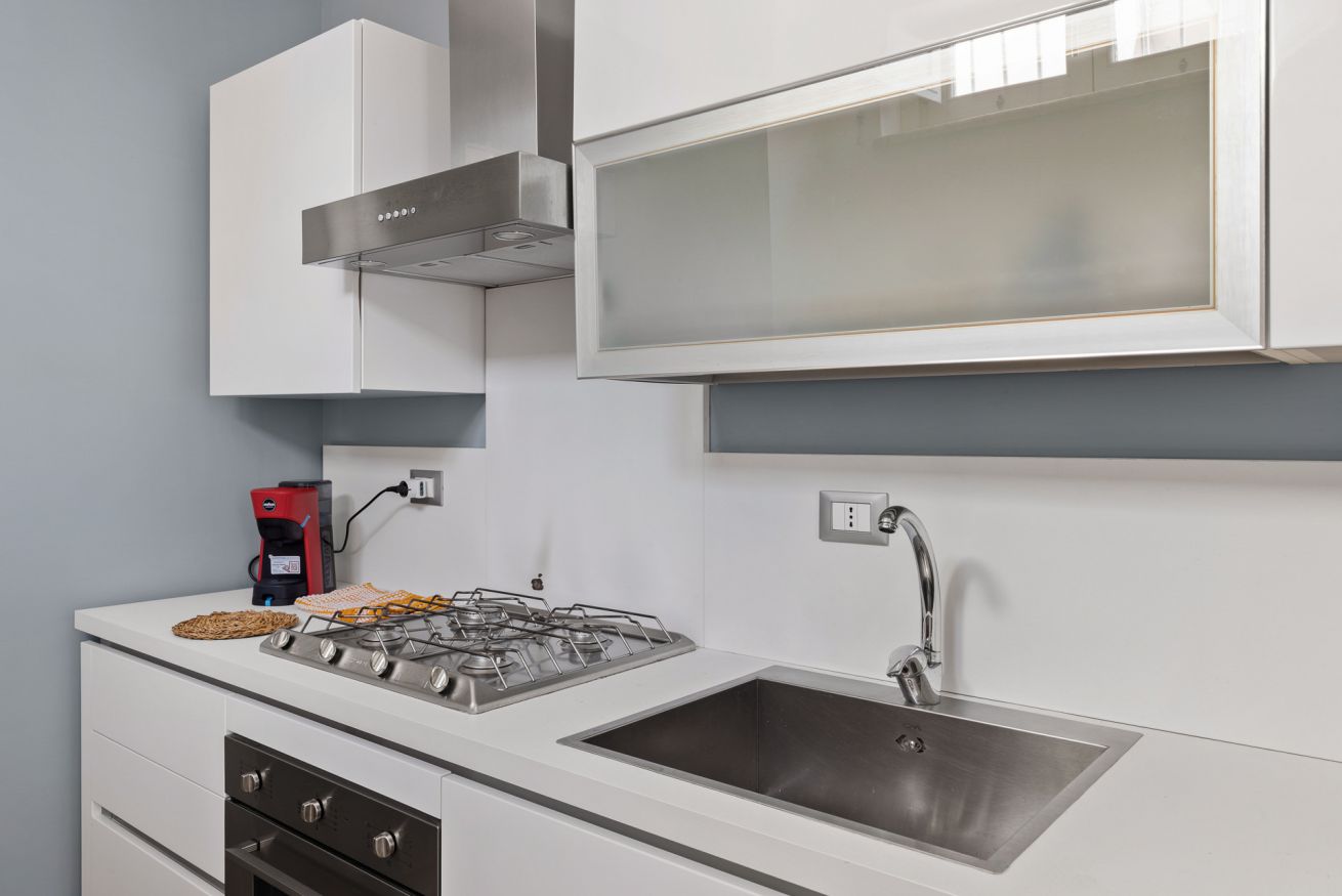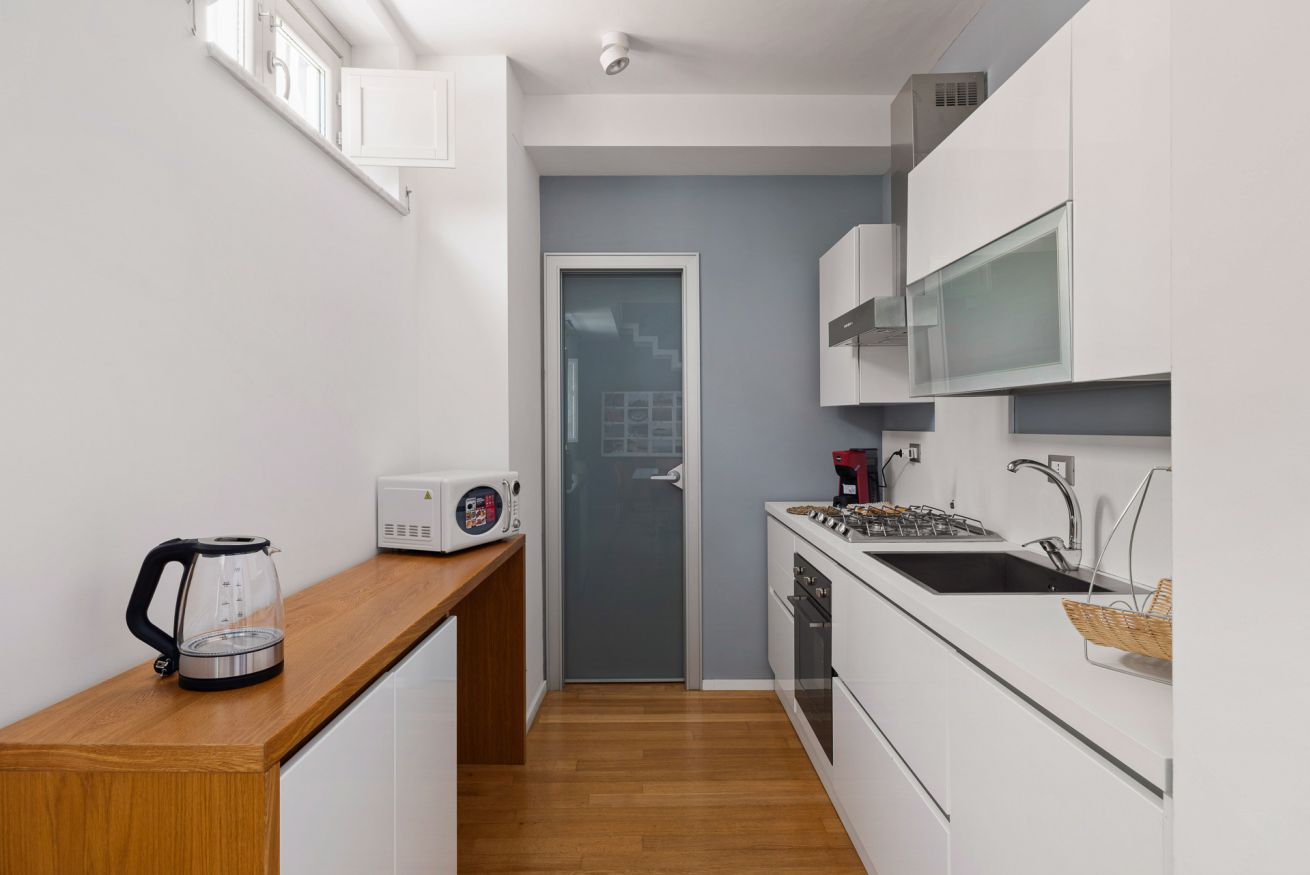 L’appartamento è completo di aria condizionata e riscaldamento ed è dotato di tutti i principali comfort, tra cui forno, lavatrice e lavastoviglie.