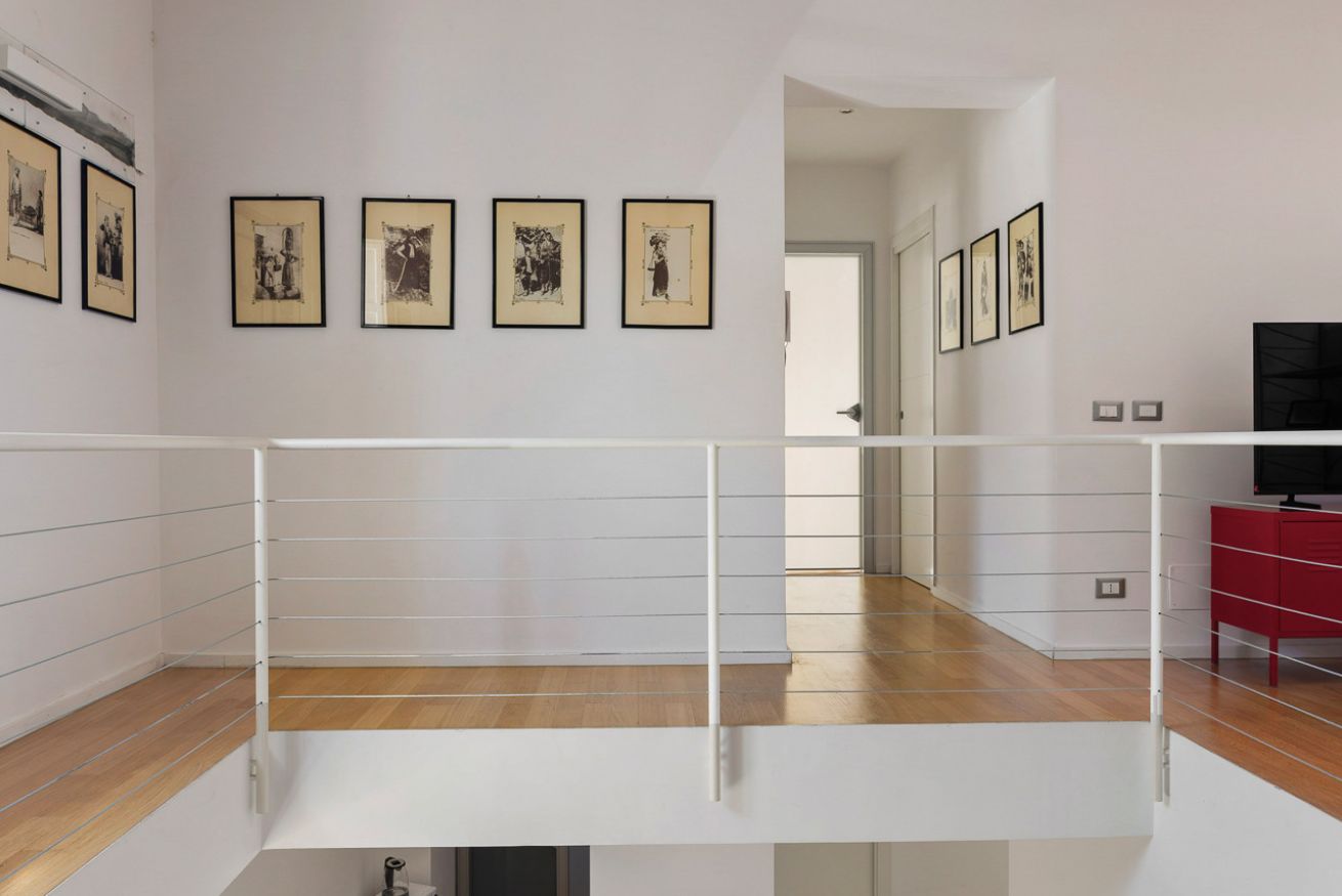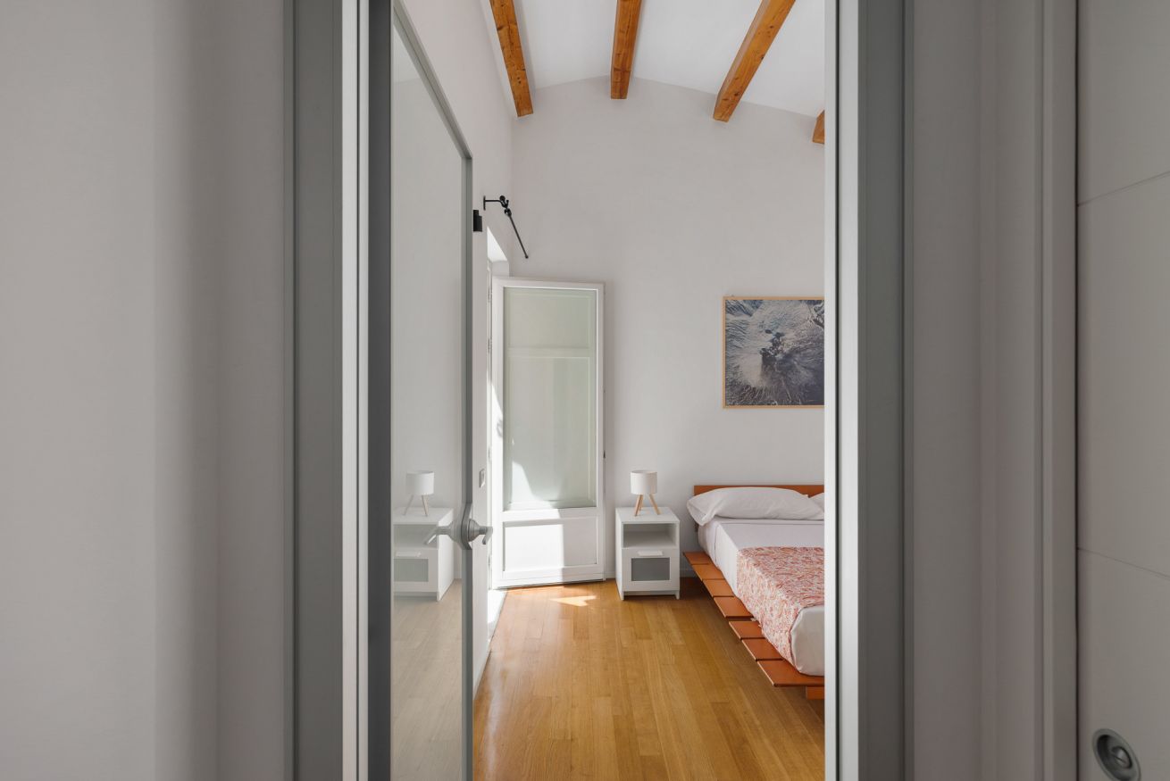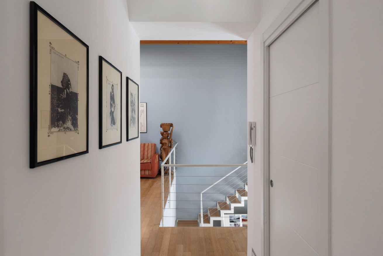 Il secondo livello ospita un’ulteriore zona soggiorno, un secondo bagno, una camera matrimoniale con piccolo patio e una camera singola. Questo piano, grazie alla sua disposizione, offre maggiore privacy e una comoda separazione tra zona giorno e zona notte.