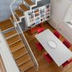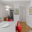 Al primo livello si trovano una zona living con area pranzo, una cucina attrezzata, un bagno e una camera da letto. Gli spazi risultano funzionali e ben collegati, ideali sia per soggiorni brevi sia per permanenze più lunghe.