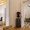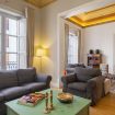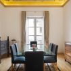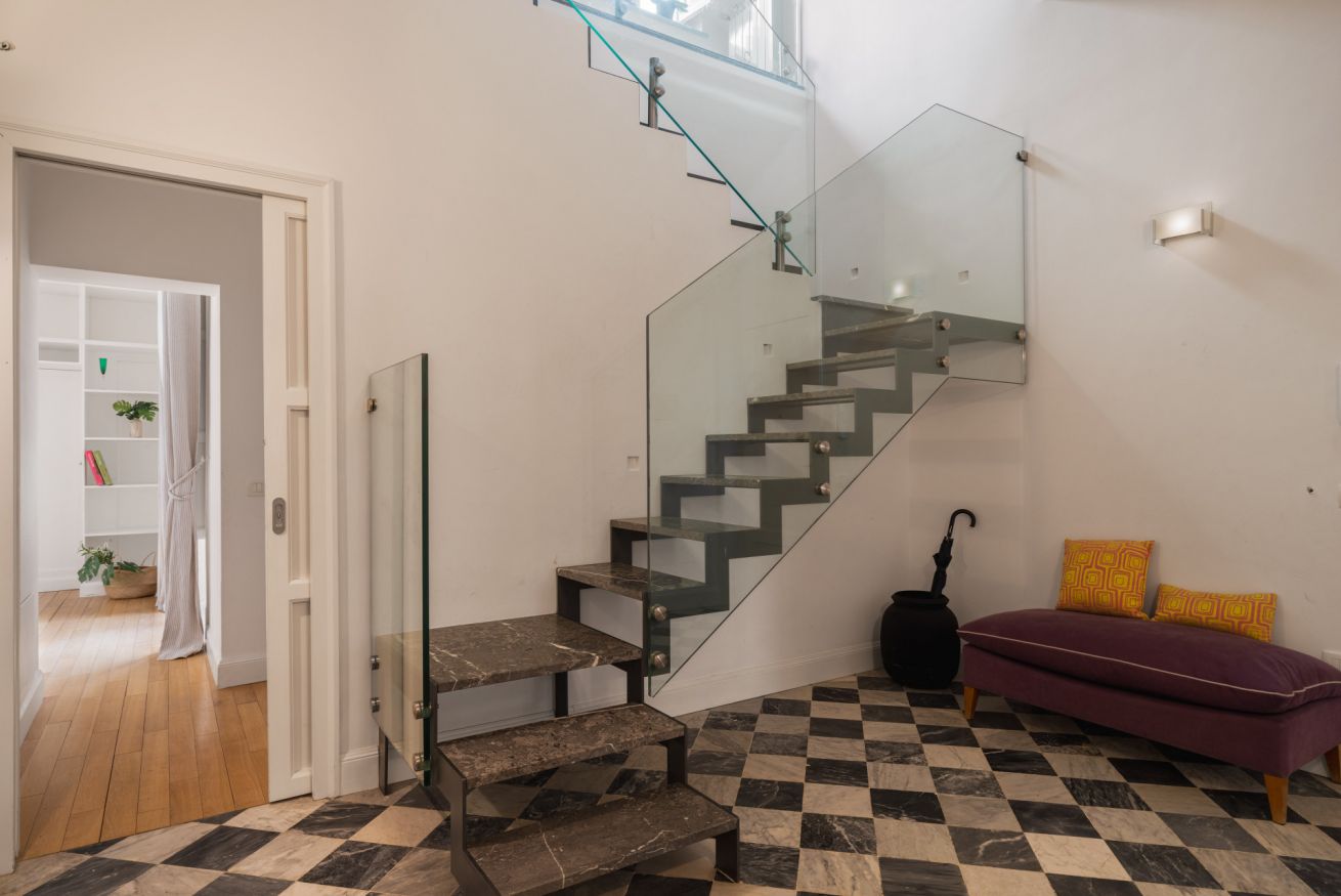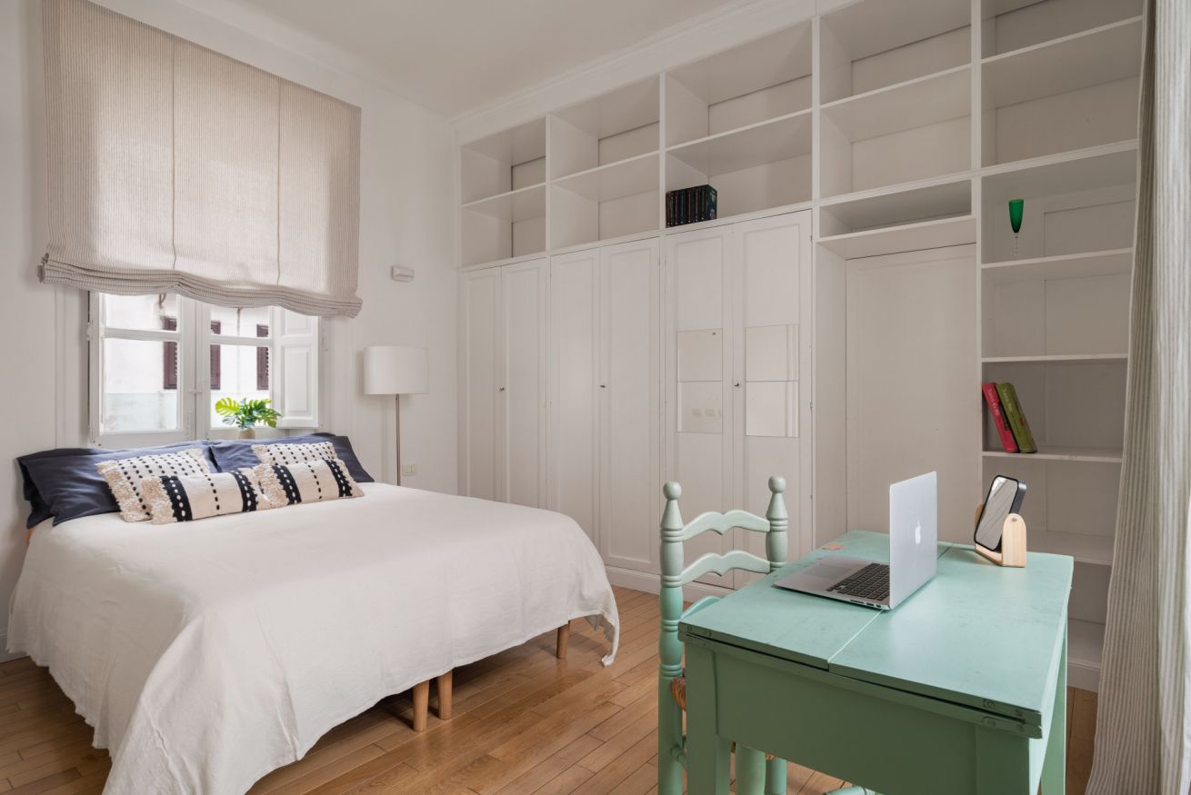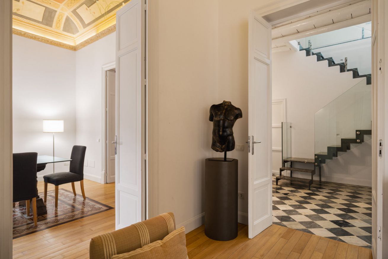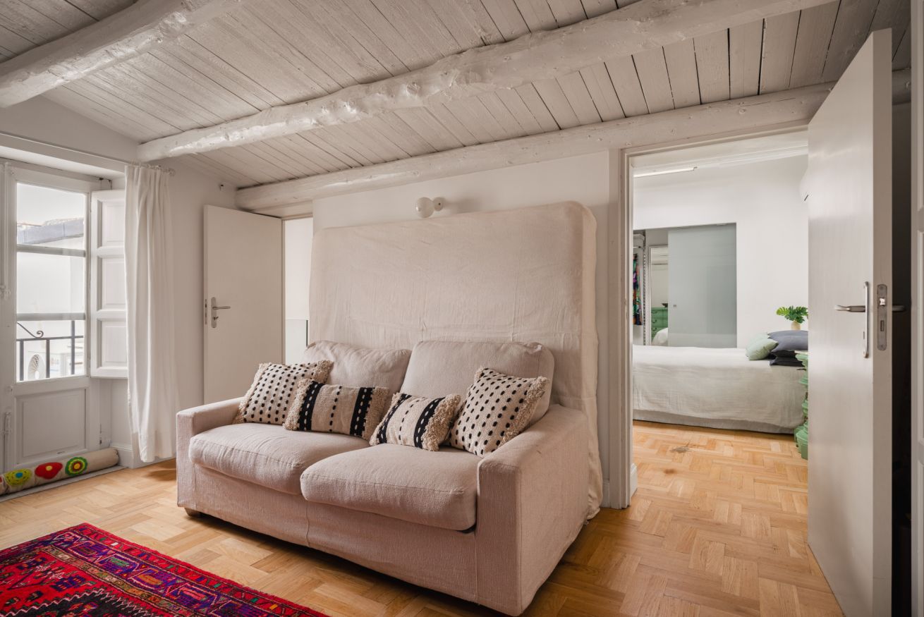 In the name of charm and spaciousness, the Garzilli Deluxe Apartment was designed. A prestigious home not only for its spacious rooms, but also for the materials chosen and used in the best way to enhance its properties. Upon entering, there is an initial hallway leading to the other areas of the house on the same floor and a modern marble staircase leading to the upper floor. Past the entrance, there are two large living rooms, one dedicated to the TV area and one to reading and relaxation, followed by a large dining room adjacent to the eat-in kitchen with an additional dining table. The living rooms are connected and enhanced by elegant enfilades to emphasise their spaciousness and brightness. Continuing from the kitchen you enter a corridor where you will find the first bathroom with a large shower, decorated with beautiful blue tiles, followed by a double bedroom with desk, en-suite bathroom with bathtub and a large and very comfortable walk-in wardrobe. Going upstairs leads to a second area of the house. To the left is a French-style double bedroom with a special skylight, turning to the right one comes to a living room with TV area and reading corner, this room leads to a double bedroom with adjacent large bathroom with shower and laundry corner. A small flight of stairs leads to an intimate and cosy terrace with a brick kitchenette and a splendid view of the city’s colourful rooftops.