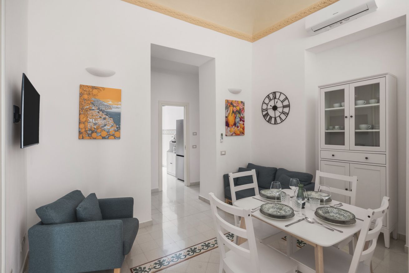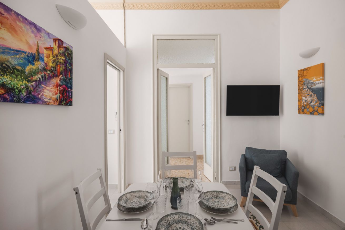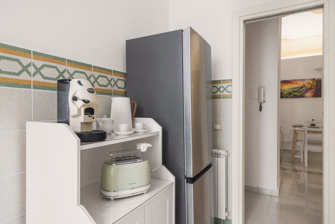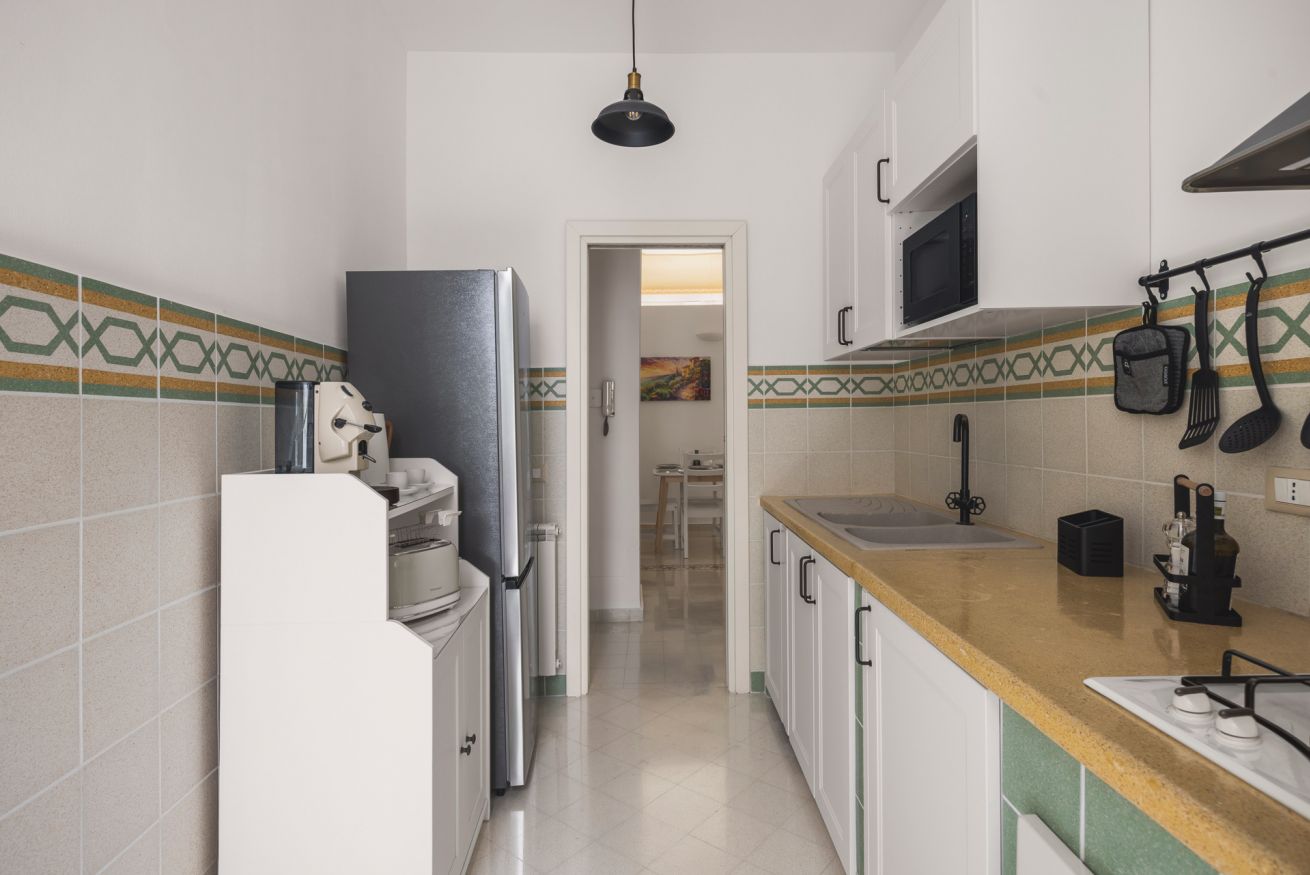 La cucina abitabile, completamente attrezzata e con balcone, è perfetta per preparare pasti in totale autonomia e godersi momenti di convivialità, mentre la zona living offre uno spazio confortevole con area pranzo e soggiorno, ideale per rilassarsi dopo una giornata trascorsa alla scoperta della città.